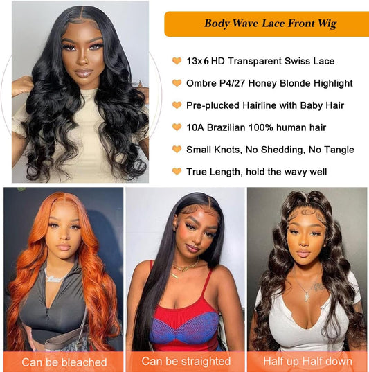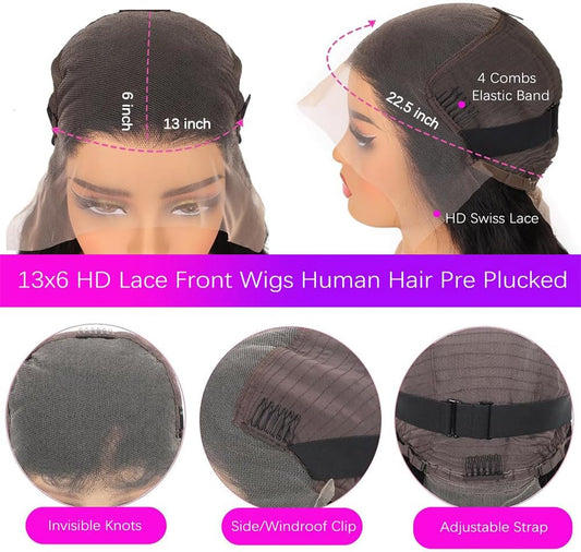 Brazilian Virgin Body Wave Human Hair 13X6 HD Lace Frontal Wig 24Inch 200 Density Body Wave Human Hair Lace Front W Igs Pre Plucked with Baby Hair 12A 100% Virgin Human Hair Wigs Full and Thick